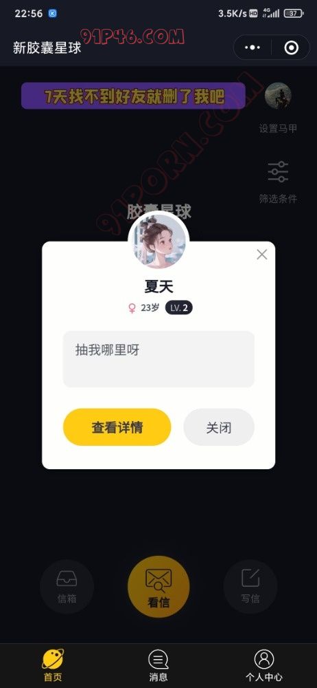 首先我不是打广告,去年都有老哥再说着这个wx小程序了,这里面狗狗多啊。两性集结地,如果看不不了信,等几分钟再进去。