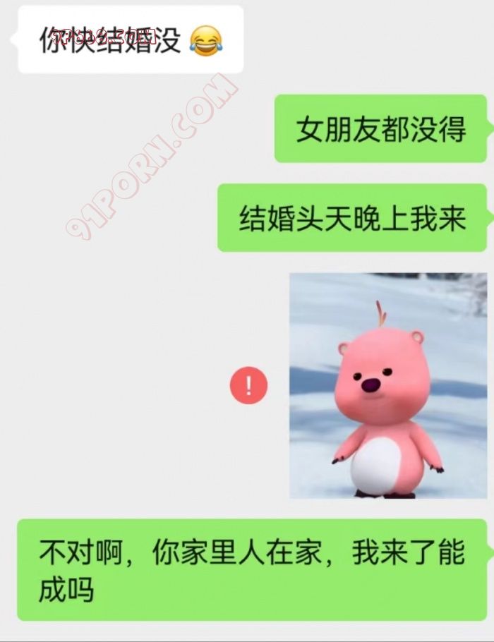 几年没玩91了,活跃一下。朋友圈得知好朋友怀孕加闪婚,马上去关心她,谁知道他邀请我“参加"婚礼(很久之前的炮友,平时不怎么联系,约我几次我也没去,后来断了联系)。。。。兄弟们等我更新视频照片(如果我还记得)