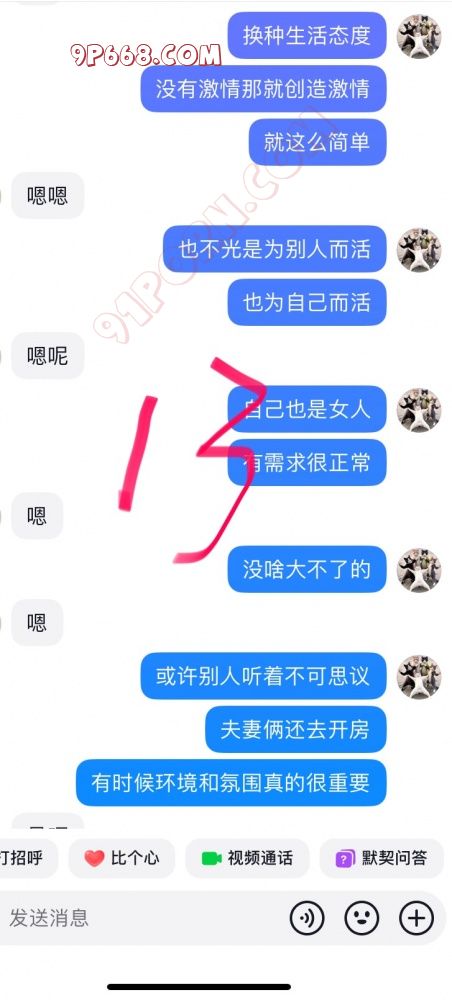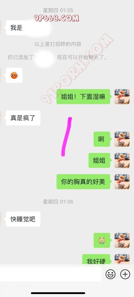 后来加了微信。可能那会稍微清醒了点!有点后悔了!但聊着聊着又自己发骚了!那天其实我有点忙的!她总以为我不理她!最后自己用手扣高潮了!水确实多!流了一地的水!听见她的淫水滴答滴答的滴下来!确实是个骚货!但是呢第二天估计进入了佛系状态!觉得对不起她老公!就把我拉黑了!这给我整得!我以为就到此结束了!没有后续了!谁知道晚上她又自己把我拉回来了!又是一顿发骚!很想和我文爱!那时候已经兜兜转转拉黑我好几回了!我慢慢也失去了兴趣!昨晚又找我聊!我故意为难她。后来又给我拉黑了!也无所谓了!白天给我拉黑!晚上想要了又给我拉回来!都说男的拔吊无情!女人干起这类事也是不遑多让!其实中间还有其他聊天的!我就截了一小段发出来了!其他的就不发了!这帖子算闭环了!各位江湖再见!
